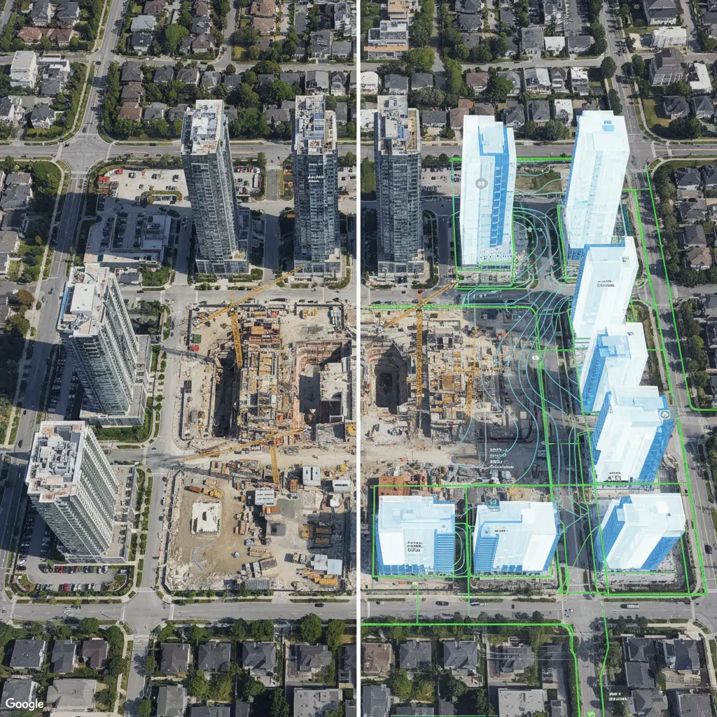 Periodic satellite updates through Earth provide independent confirmation that major works align with plans. AI can annotate visible progress, “structure topped out,” “paving complete”, creating a visual record for owners and investors.